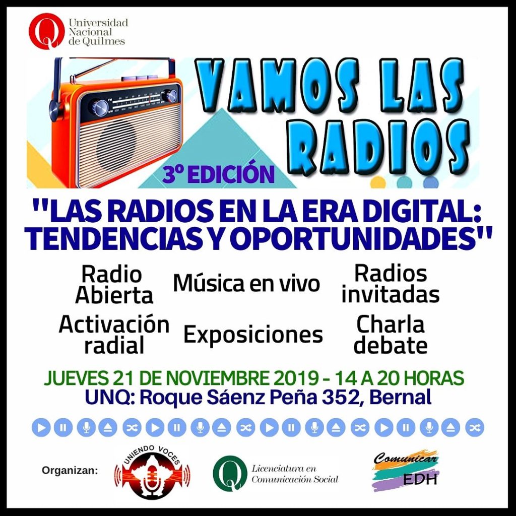 De esta manera el jueves 21 de noviembre de 14 a 20 se realizarán diversas actividades en la 3º edición de Vamos las Radios, bajo el concepto de «Las Radios en la Era digital: tendencias y oportunidades» .