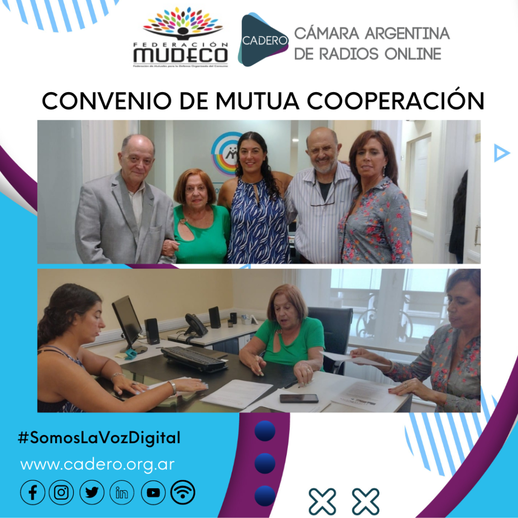 En el día de la fecha autoridades de CADERO firmaron un convenio de trabajo con la MUDECO para la promoción de la Defensa de los Consumidores y Usuarios de todo el país. El objetivo de MUDECO es favorecer la puesta en redes de las organizaciones mutuales, entre los consumidores y usuarios de cada localidad, ciudad, o provincia e incluir a los pequeños productores locales y en ese sentido la Red Federal de Contenidos Radiofónicos distribuirá contenidos regionales entre la red de radios y productores audiovisuales asociados.