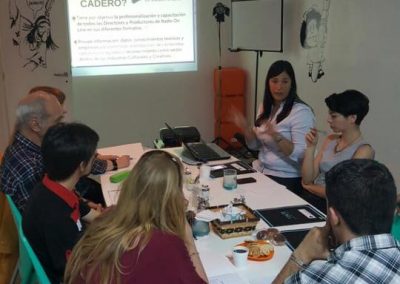 Espacio de networking para visibilizar las producciones radiofónicas, un trabajo en red articulado con las demás comisiones, participación en eventos, producciones y transmisiones especiales. Un espacio para mantenerse actualizados, capacitarse y generar proyectos vinculantes.